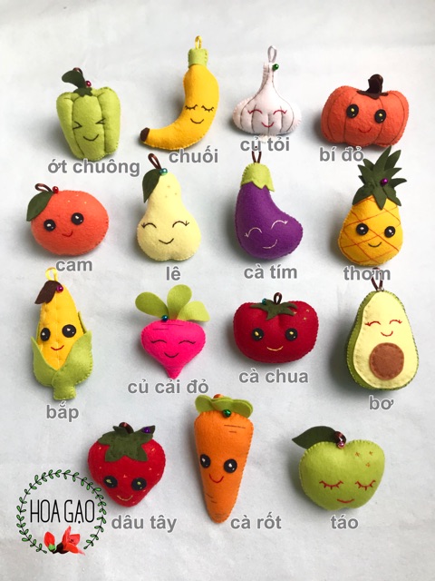 Sản phẩm củ quả rời dùng được cho treo nôi, treo cũi, vừa tay cho bé làm đồ chơi nhồi bông. *** Hãy cảm nhận chất lượng khác biệt từ sản phẩm của Hoa Gạo Handmade so với các nơi khác: với chất liệu vải dạ nỉ cao cấp, may một cách tỉ mỉ bằng tay mọi chi tiết, dồn bông cứng chắc đầy đặn tạo nên sự khác biệt -> mềm mại cho bé, dùng được làm đồ chơi sau thời gian bé lớn ko còn treo nôi, giặt được thoải mái ( tốt nhất giặt bằng máy trong túi lưới) không lo bong tróc các chi tiết, không lo bay màu, ko lo bị xẹp bông sau thời gian ngắn sử dụng!