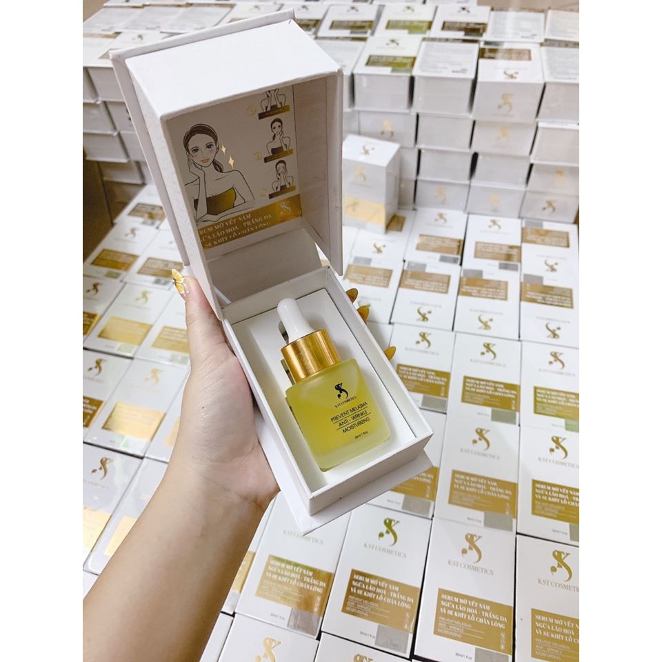 💢Công dụng vượt trội của Serum trị nám KST ✔️ Trị nám , xóa tàn nhang hiệu quả ✔️ Trắng mịn căng mướt làn da ✔️ Hồi phục da bị tổn thương sâu ✔️ Se khít lỗ chân lông, kiềm dầu hiệu quả ✔️ Tăng cường độ đàn hồi săn chắc làn da ✔️ Chống lão hóa, xóa nếp nhăn ❤ Em không ngại chụp cam thường em chỉ cần có lý do 😆 Lý do nằm ở chổ em sd #srum_nám_KST TỰ TIN KHOE DA CAM THƯỜNG MÀ KO SỢ BỊ SOI ÔI BẠN NÀY DA XẤU QUÁ 😆 💛💛💛Serum trị nám tối ưu nhất KST là sản phẩm chuyên sâu điều trị #nám_da, #tàn_nhang cao cấp của Thương Hiệu KST_COSMEC 💛💛💛 Serum Nám được sản xuất bằng nguyên liệu thảo dược thiên nhiên, an toàn 100% cho làn da. Với công thức đặc biệt, Serum Nám KST sẽ giúp bạn loại bỏ mọi hiện tượng nám, rám da, vết thâm, đồi mồi, tàn nhang. Dưỡng da trắng sáng, trắng hồng. ✔️ Giảm vết thâm, cải thiện sắc tố da, làm sáng và trắng da an toàn. ✔️ Ngăn ngừa lão hóa, làm giảm sự xuất hiện của nếp nhăn và cải thiện tính đàn hồi của làn da. ✔️ Cung cấp độ ẩm cần thiết, cải thiện lỗ chân lông. ✔️ Sản phẩm dạng tinh chất có tác dụng hiệu quả trong việc giúp thấm sâu và loại bỏ 90% nám da chỉ sau vài tuần. Mang đến làn da sạch nám, trắng hồng đúng như bạn mong muốn. ✔️ Giúp đánh bật được vùng nám da da tuổi tác, môi trường, sinh nở và cả yếu tố di truyền gây nên. ✔️ Da săn chắc, căng bóng hơn, kích thích tế bào mới tái sinh. Nâng lớp collagen bền dai chống sự sụp đổ để ngăn ngừa nếp nhăn. ✔️ Giúp cải thiện làn da thô ráp, sần sùi, làm cấu trúc da đẹp, mịn màng. Giúp lỗ chân lông được thu nhỏ, ngăn bã nhờn, ngăn da tiết dầu. 💁♀️💁♀️ Hiệu quả sau 2-3 tuần sử dụng, có thể dùng lâu dài mà không bị tác dụng phụ. 💛 Hướng dẫn: ➖ Lấy 1- 2 giọt serum vỗ đều lên mặt. Bôi tập trung vào những chỗ có vết thâm, nám, tàn nhang ở trên da. #550k/30ml #KSTCOSMETICS