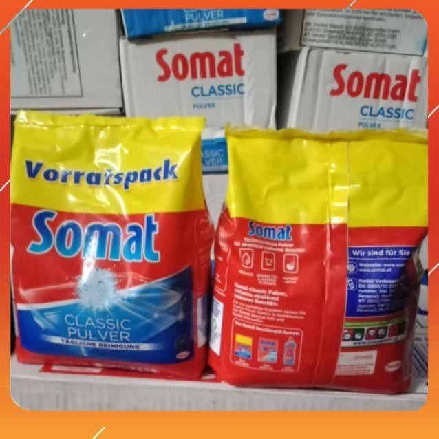 - Bột rửa bát Somat có tác dụng: Làm sạch tẩy rửa các vết bẩn dầu mỡ - Bột rửa bát Somat sử dụng: Mỗi lần sử dụng từ 10-20g bột tùy thuộc vào lượng chén bát cần rửa - Bảo quản nơi khô ráo, tránh ánh nắng trực tiếp và nhiệt độ >40C, - Hàng xuất xứ Châu Âu. Cam kết 1000% chính hãng Để tối ưu và đạt hiệu quả tốt nhất nên sử dụng kết hợp cùng muối rửa làm mềm nước cùng nước làm bóng Lưu ý: Mẫu mã bao bì có thể thay đổi theo từng lô hàng, nhưng chất lượng không thay đổi