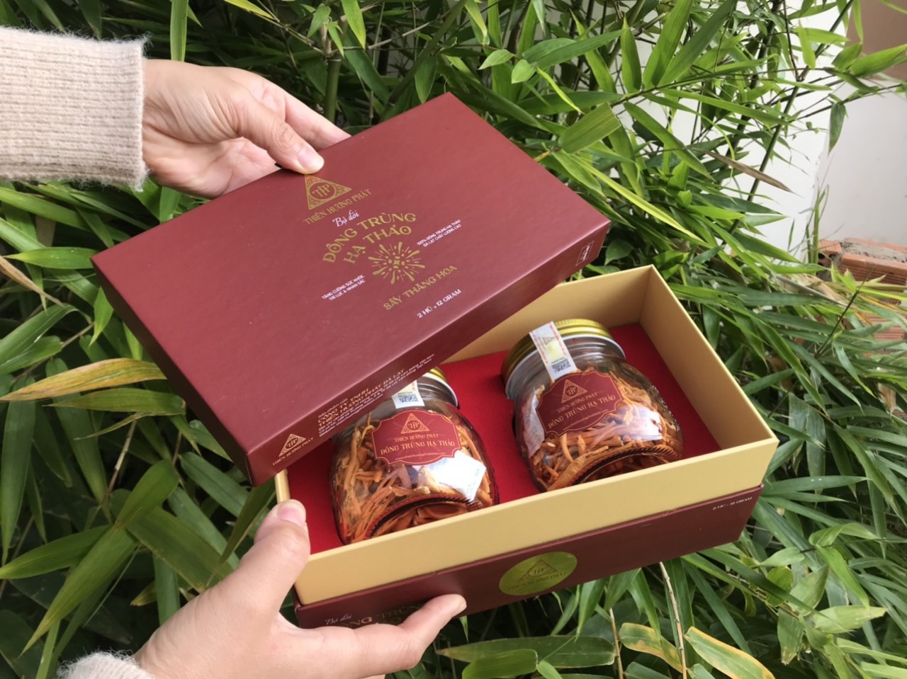 Bộ đôi quà tặng cao cấp - Nấm Đông Trùng Hạ Thảo - Sấy Thăng Hoa - Thiên Hương Phát Đà Lạt - 2 hủ 12 gram.