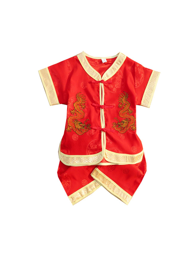Bộ trung hoa bé trai thêu hình rồng, kiểu dáng truyền thống chất vải mềm mát