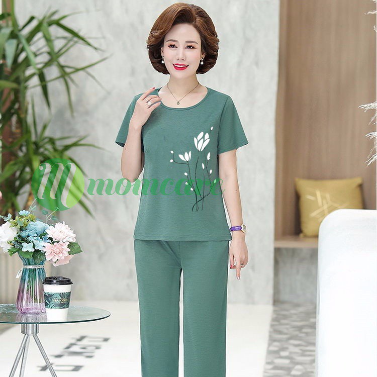 Bộ đồ trung niên cho mẹ B77 - Đồ bộ Quần áo kiểu thời trang nữ trung tuổi mặc nhà mùa hè - Bộ ngủ nữ Bigisze cho người lớn tuổi dành cho U40 U50 U60 U70