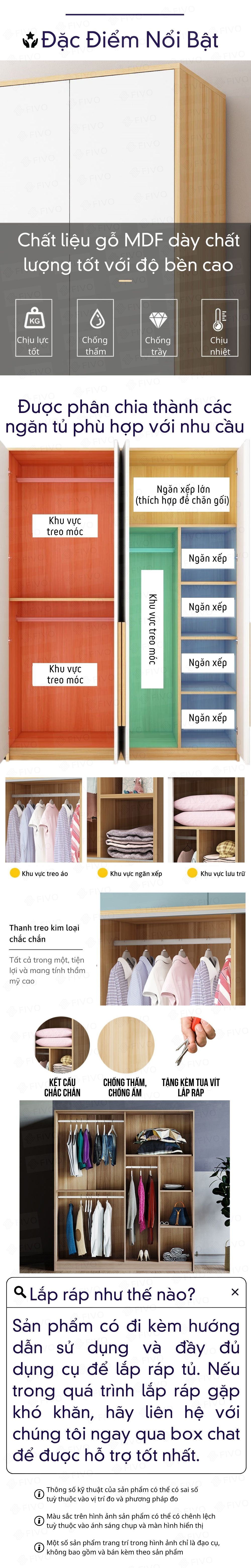 Hướng dẫn sử dụng | Đây là sản phẩm tự lắp ráp (Hướng dẫn lắp ráp có đi kèm chi tiết bên trong sản phẩm)Có nhiều ngăn phù hợp cho cả việc móc và xếp quần áo tuỳ vào nhu cầu |