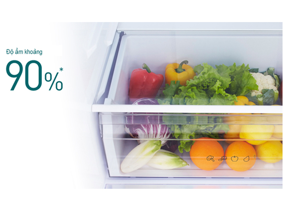 Kiểm soát độ ẩm 90%, ngăn rau quả trên tủ lạnh NR-BX421WGKV, giữ rau quả luôn tươi ngon, tránh bị khô héo và giảm chất dinh dưỡng trong thời gian bảo quản.