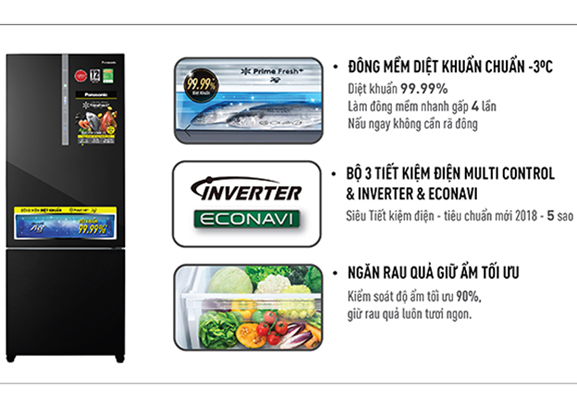 Đi kèm công nghệ cảm biến thông minh Econavi, tủ lạnh Inverter Panasonic có khả năng tự điều chỉnh để giữ độ lạnh phù hợp bảo quản thực phẩm tươi ngon, tránh gây lãng phí điện năng.
