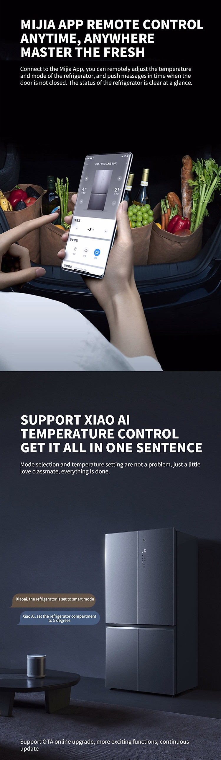 Điều đáng nói là Tủ lạnh Mijia Cross Four Door Exclusive Edition áp dụng phương pháp khử trùng bằng ion và tỷ lệ khử trùng đạt 99,9%. Đồng thời, đối với điều kiện bảo quản rau quả là chính, hệ thống bảo quản tươi sống được cung cấp để làm sạch toàn bộ, loại bỏ etylen và loại bỏ virus với hiệu quả cao và thanh lọc để đảm bảo thực phẩm luôn tươi ngon như trước.