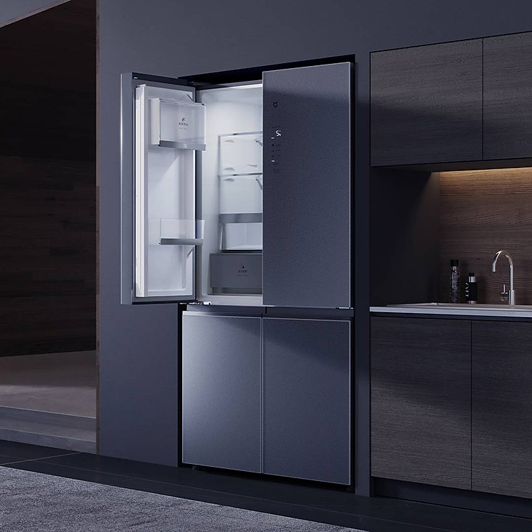 Mijia Fridge Four Door Exclusive Edition 550L có điểm mạnh là khử trùng tích cực với 120 triệu nhóm ion âm và dương năng lượng cao, nó đi kèm với bề mặt tinh thể băng nhám và nghệ thuật và 7 phân vùng độc lập để lưu trữ.