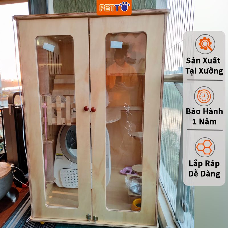 - Tủ mèo được làm từ chất liệu gỗ Plywood cùng với hệ thống đèn led siêu bền, chắc chắn, và có tính thẩm mỹ cao. Dễ dàng tháo lắp. Tủ mèo mang phong cách sang trọng hiện đại phù hợp ngay với cả những căn hộ chung cư. Thiết kế gọn nhẹ, tiết kiệm diện tích, dễ dàng di chuyển.