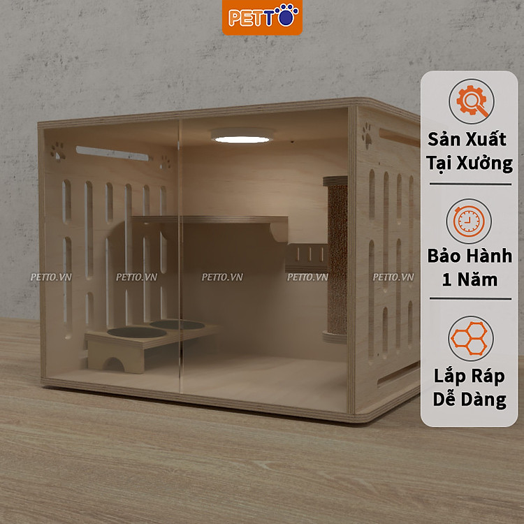 TỦ MÈO BẰNG GỖ KÈM HỆ THỐNG ĐÈN LED CAO CẤP