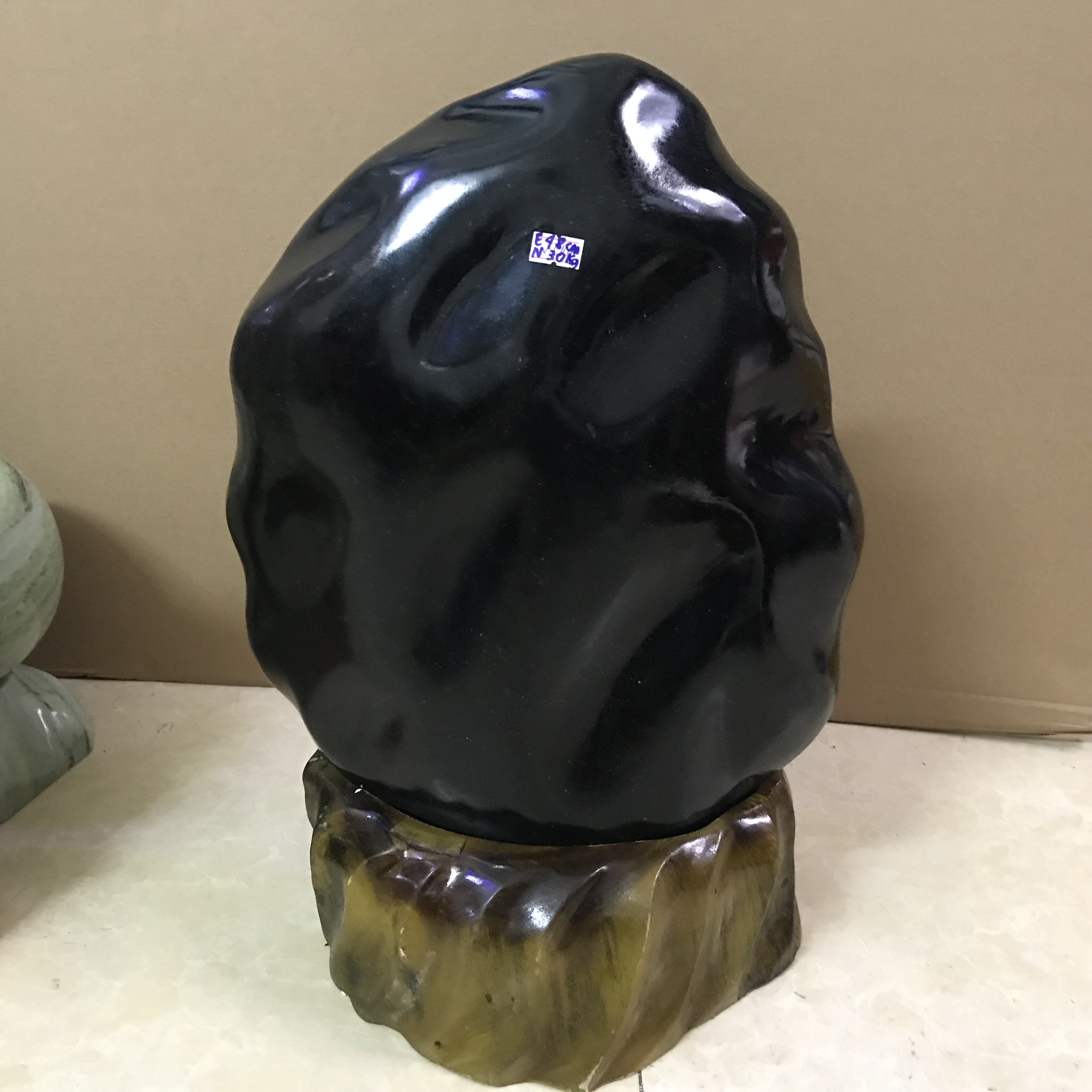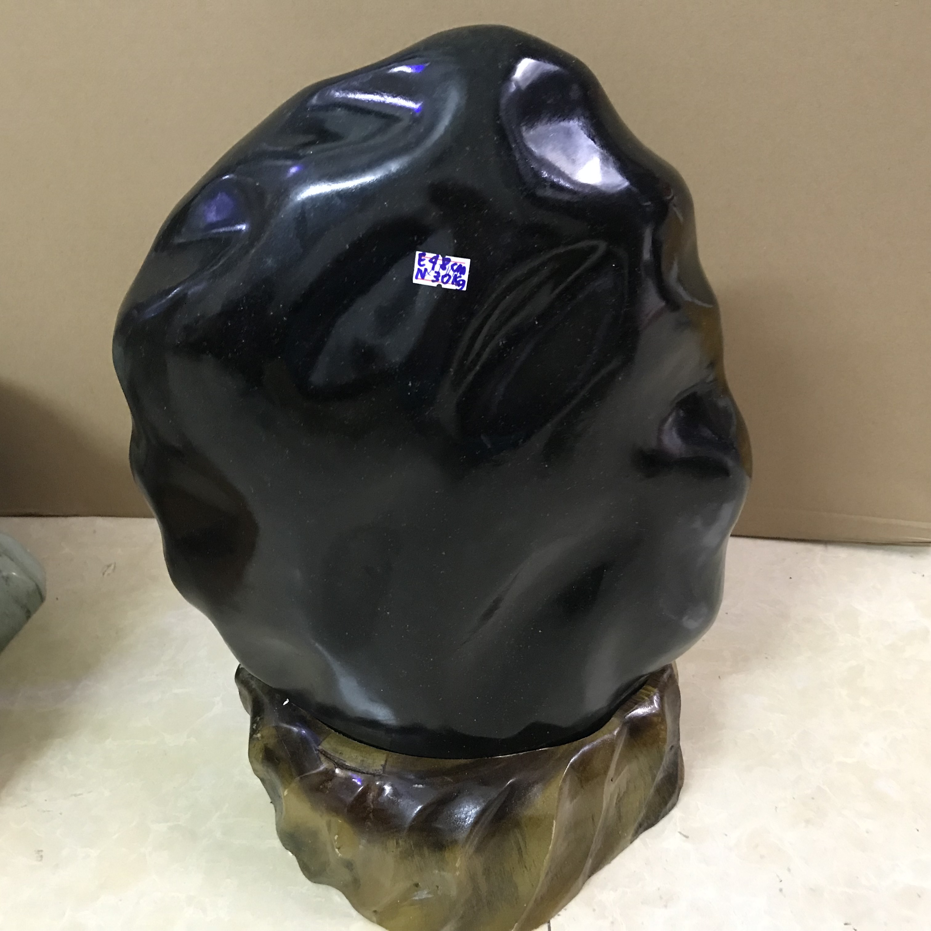Kích thước: Cao 48 cm, nặng 30 kg cả chân đế. Chất đá cực kỳ đẹp, không kiểm định nên chỉ đoán là obsidence
