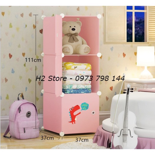 Giới thiệu TỦ NHỰA 3 Ô CỬA KHỦNG LONG DỄ THƯƠNG LẮP GHÉP ĐỂ QUẦN ÁO ĐA NĂNG THÔNG MINH sâu 37cm