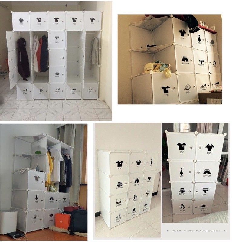 Tấm chữ nhật 35cm x 45cm là mặt đáy, mặt trên và 2 mặt bên hông Tấm vuông 35cm x 35cm là mặt lưng (hay mặt giáp tường) Cửa vuông 35cm x 35cm 1 ô chứa được 15kg quần áo Chốt nhựa có thể gắn được 8 hướng, khi lắp tủ, tất cả các chốt ở mặt giáp tường sẽ quay ra cùng 1 hướng, tất cả các chốt ở mặt ngoài cũng sẽ quay cùng 1 hướng Thanh treo tùy vào mô tả mặt hàng, 1 thanh treo sẽ tương đương với 2 miếng thân tủ (tấm chữ nhật 35x45). Một thanh treo được 18-20 cái áo sơ mi