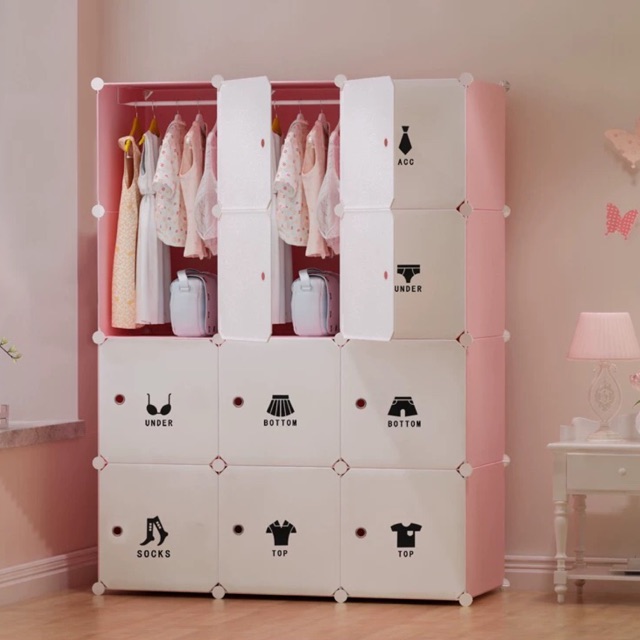 Giới thiệu TỦ NHỰA GHÉP 12 Ô SÂU 47cm. Tặng kèm 2 treo đồ. Thân hồng cửa trắng quần áo