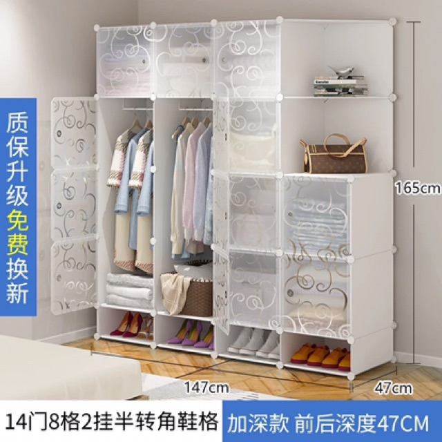 Tủ nhựa ghép- Tủ quần áo- tủ 20 ô (gồm 14 ô đựng quần áo+ 2 kệ góc và 4 ô đựng giày) sâu 47cm. Tặng kèm 2 treo đồ.