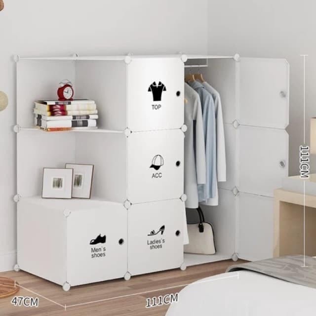 TỦ NHỰA GHÉP 7 Ô ĐỂ ĐỒ & 2 Ô TRANG TRÍ 🔴 Chất liệu tủ : 🔷Tủ được lắp từ 3 thành phần chính: (1). Tấm nhựa có khung thép. (2) Chốt. (3) Thanh treo quần áo. (4) Nam châm. 1️⃣ Tủ được cấu tạo từ khung thép và nhựa PP thiên nhiên, đây là loại nhựa dẻo, mềm (không phải nhựa giòn ) có độ bền trên 10 NĂM, shop bảo hành chất lượng khung thép VĨNH VIỄN. ✔️Không chứa phoóc môn và chất gây ô nhiễm, không có mùi nhựa. ✔️Khung thép quanh tấm nhựa có đường kính 4mm, được sơn tĩnh điện, bảo đảm chống han gỉ và thẩm mỹ. Khung thép liên kết với nhau qua hệ chốt tạo thành một lưới không gian 3 chiều rất chắc chắn. 2️⃣ Chốt được làm từ nhựa ABS vô cùng bền bỉ, chắc chắn giữa các khung thép và bền bỉ với thời gian. 3️⃣ Thanh treo quần áo làm bằng thép và sơn trắng tĩnh điện, chịu lực từ 10-15 bộ quần áo. 4️⃣ Nam châm được gắn vào chốt tại vị trí cửa để giữ cánh cửa khi đóng. ⛔️⛔️ƯU ĐIỂM NỔI BẬT : - GỌN, NHẸ, dễ dàng tháo lắp, vận chuyển - Nhựa từ thiên nhiên, rất AN TOÀN cho trẻ nhỏ - Dễ dàng lau chùi, không bám bẩn - Lắp đặt, thay đổi kiểu dáng linh hoạt - Có thể móc, xếp quần áo hoặc để sách vở thoải mái, mỗi ô có thể chiu lực từ 12-15kg - Tùy ý chọn số ô tủ, màu thân tủ, hình cánh tủ ghép tùy ý theo sở thích của bạn - Dễ dang thay thế phụ kiện khi bị hỏng ( khác hoàn toàn với tủ vải )
