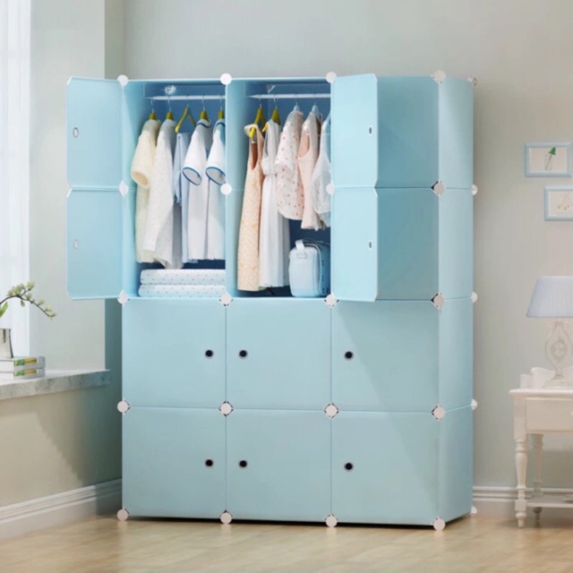☘️TỦ đựng quần áo 12 ô lắp hoàn thiện: cao 150cm x rộng 110cm x sâu 47cm. Thân xanh dương mới Chi tiết phụ kiện tủ nhựa ghép đa năng 12 ô. Tấm thân 35*45cm: 31 Tấm lưng 35*35 cm: 12 Cánh cửa 35*35 cm: 12 Chốt : 42 cái Nam châm : 24 cái Thanh treo : 2 cái Búa gỗ : 1 cái Giấy hướng dẫn lắp tủ : 1 tờ ưu điểm của tủ nhựa ghép đa năng 12 ô: Chất liệu nhựa PP( Polypropylen) an toàn thân thiện với môi trường Khoang để đồ bố trí linh hoạt tháo lắp dễ dàng Sức chứa lớn mỗi ô tủ chịu được trọng lượng 12kg Mẫu mã đa dạng phong phú, màu sắc tươi mới Đặc biệt khách hàng có thể tùy ý lựa trọn màu sắc,số ô và lựa trọn cửa tủ như mong muốn. Chất liệu tủ nhựa ghép đa năng Tủ được làm từ tấm nhựa PP ( Polypropylen) an toàn với môi trường. Tấm nhựa có độ dày 0.3-0.4mm,xung quanh được gia cố bằng khung thép có sơn tĩnh điện, đường kính khung thép là 4mm. Các khung thép liên kết với nhau qua những chốt nhựa rất chắc chắn. Chốt nhựa làm từ ABS ( Acrylonitrile Butadiene Styrene copolymers)vô cùng dẻo dai và bền bỉ. Thanh treo được làm bằng thép và được sơn tĩnh điện. Nam châm được gắn vào vị trí mép cửa tủ để làm nhiệm vụ giữ cánh tủ nhà bạn không bị hở khi đóng lại.