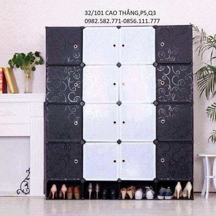 Tủ nhựa ghép 16 ô có kích thước cao 166cm,rộng 166 cm và sâu 47cm. • Kích thước mỗi ô tủ nhựa ghép sau khi ráp xong sâu 47cm, rộng 37cm, cao 37cm • Bao gồm Búa gỗ, dụng cụ lắp ráp, chốt dự phòng đầy đủ • Khớp nối nối nhựa ABS siêu bền. • Tủ được làm từ nhựa PP dẻo dai, đồ đàn hồi tốt, bên ngoài có khung sắt bao bọc rất chắc chắn, các miếng nhựa được kết nối với nhau bằng các chốt nhựa ABS rất cứng cáp, tạo độ bên vững cho tủ theo thời gian, 1 ô có thể chịu được 13 kg. • Được nối với nhau bằng chốt nhựa 8 chiều, dễ dàng lắp ráp, dễ dàng sáng tạo • Nhiều kích thước phù hợp từng nhu cầu • Có thể mua tủ đựng quần áo, hoặc tủ giày, hoặc làm kệ 32/101 CAO THẮNG,P5,Q3- 0982.582.771-0856.111.777 #tunhuaghep #tunhuaghepdanang #tunhuaghepthongminh #tunhualapghep #tughepdanang #tunhuathongminh #tuquanaosinhvien #tuquanao #tuao #tu #tughepchobe #tunhuaghepchobe #tunhualapghepchobe #tughepgiare #tunhuaghepgiare #tunhualapghepgiare #tu16o #16o"