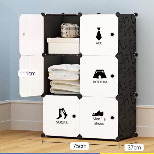 Nhà cửa & Đời sống > Nội thất > Tủ quần áo || TỦ NHỰA QUẦN ÁO LẮP GHÉP 6 Ô SÂU 47cm. Thân đen cửa quần áo. Tặng kèm móc treo đồ.