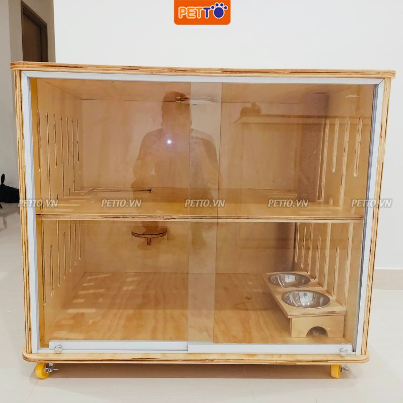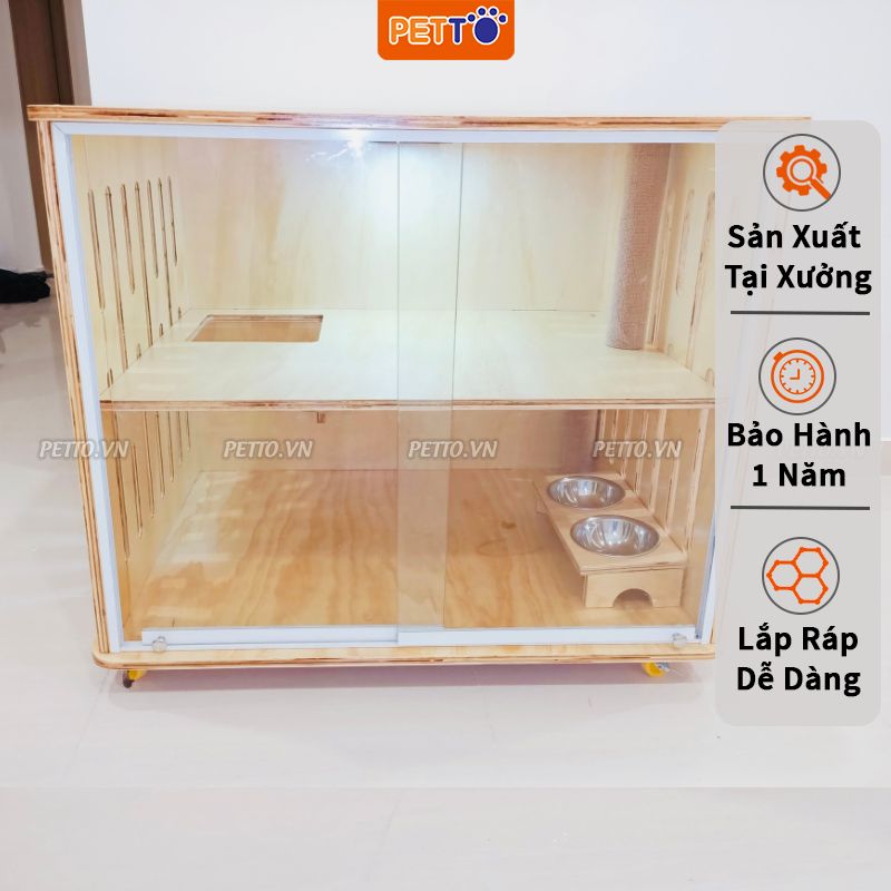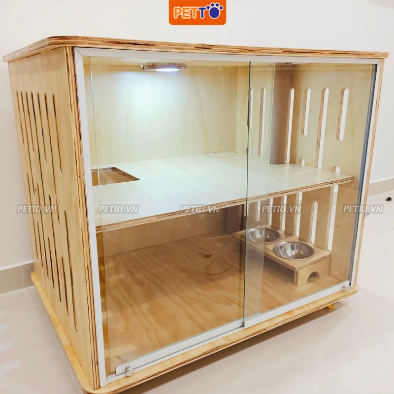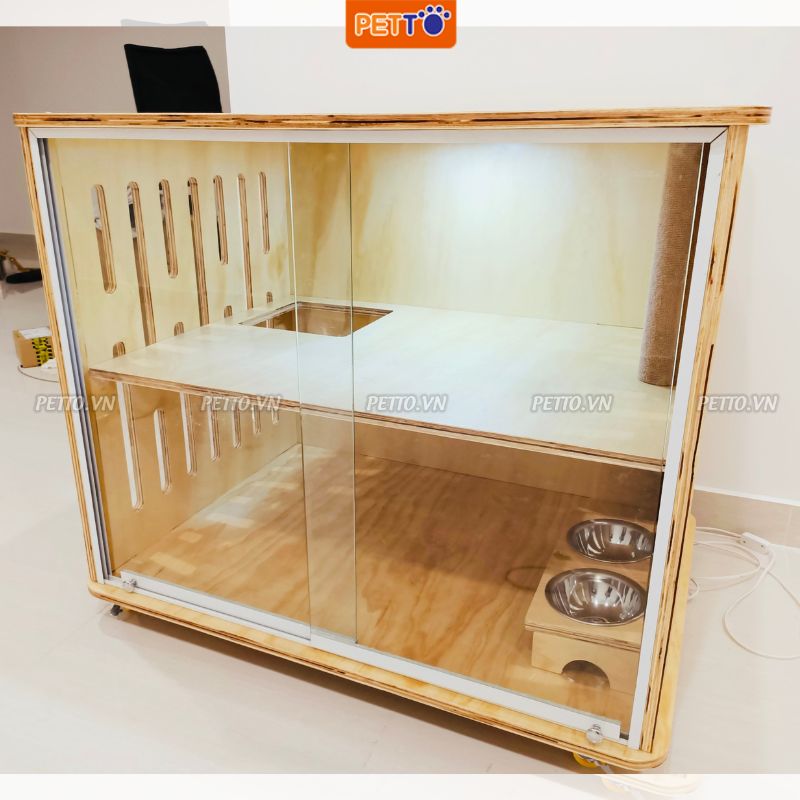 Tủ nuôi mèo bằng gỗ 2 TẦNG thiết kế CHẮC CHẮN kèm ĐÈN LED , bát ăn sang trọng sản xuất TẬN XƯỞNG CC037
