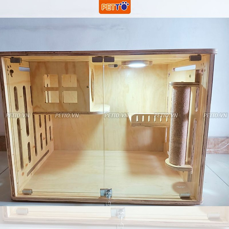 Tủ nuôi mèo PETTO Nhà mèo villa bằng GỖ sang trọng kết hợp hệ thống ĐÈN LED kèm nhiều đồ chơi cào móng leo trèo CC018_2