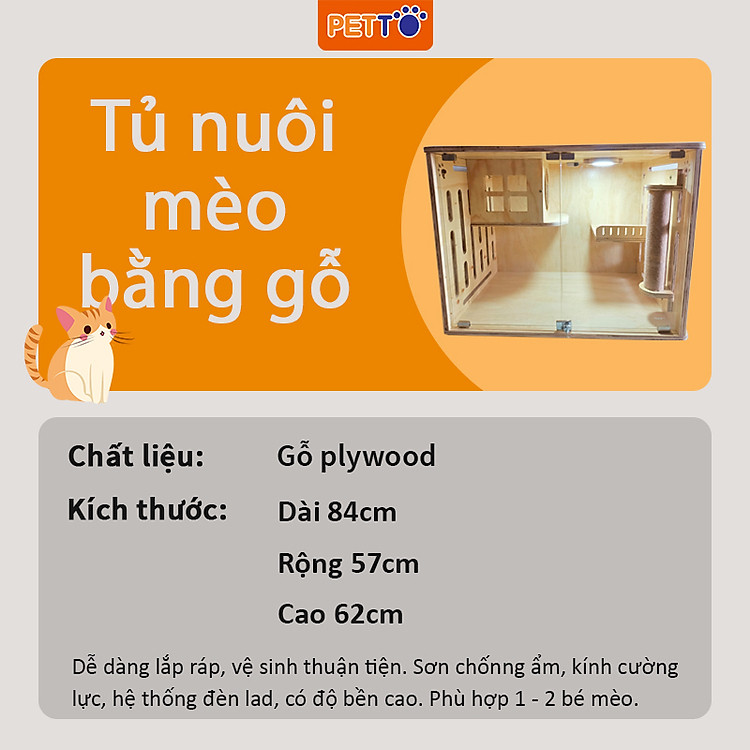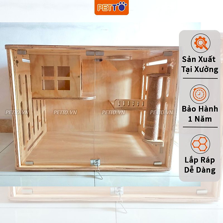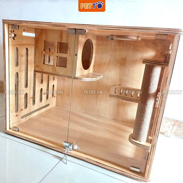 - Tủ cho mèo sử dụng chất liệu gỗ PYWOOD cao cấp giúp sử dụng thời gian dài, có độ vững chắc giúp mèo yên tâm vận động sinh hoạt.