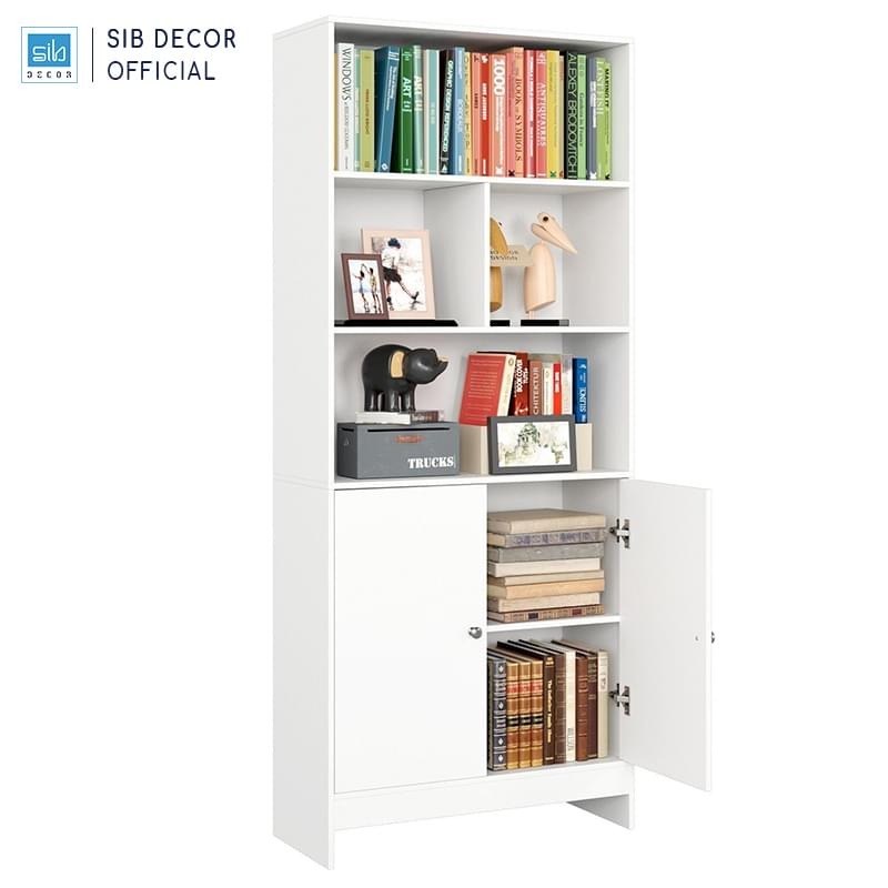 - Giá sách màu trắng có cửa này có 3 ngăn mở ở tầng trên và chiều cao kệ có thể điều chỉnh ở tủ dưới, cung cấp thêm không gian để sắp xếp sách, tạp chí, tài liệu hoặc vật dụng trang trí.