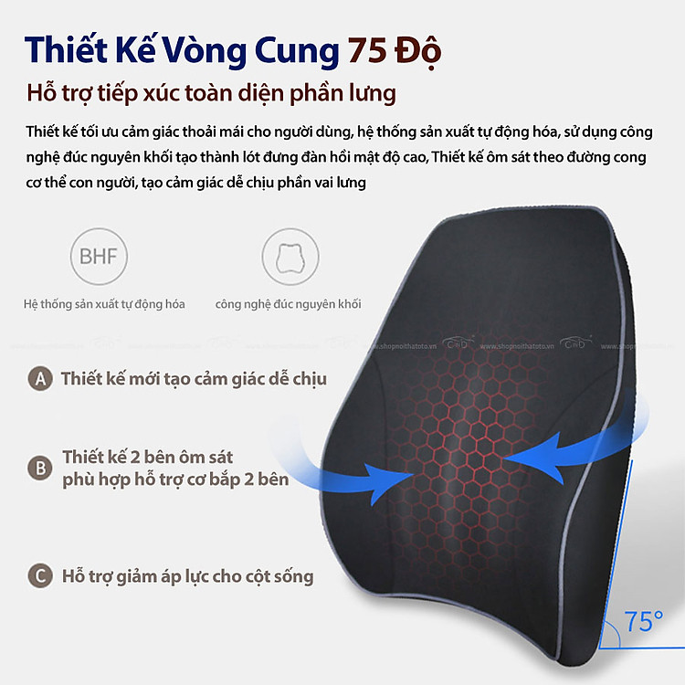 - Tựa lưng ô tô cao su non bọc da G003 màu đen đỏ được thiết kế tỉ mỉ từ chất liệu cho đến từng đường may, mang đến sự hài lòng tuyệt đối cho người sử dụng từ vẻ ngoài, cho đến độ mềm mại, êm ái của một chiếc gối lót lưng chất lượng. Kiểu dáng vòng cung ôm sát hai bên hông hỗ trợ cơ bắp và giảm áp lực lên cột sống.
