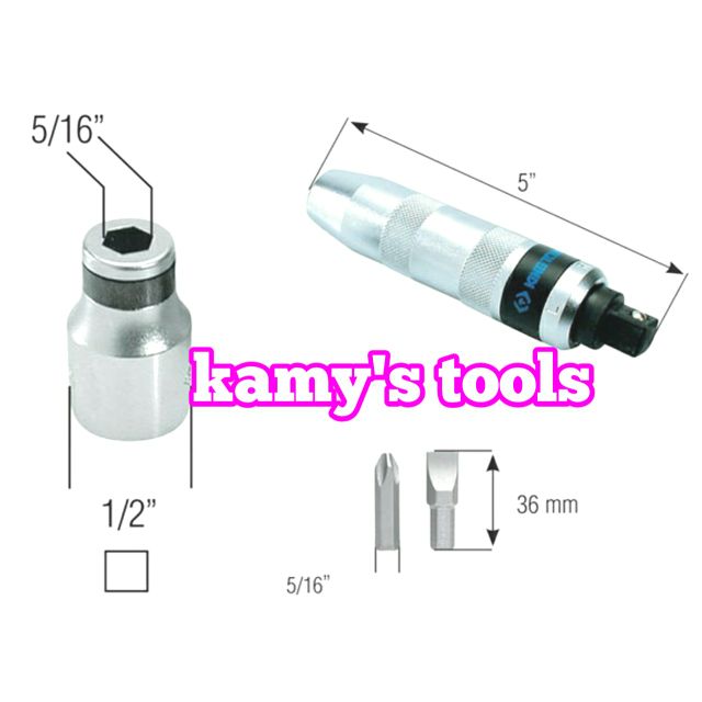 Kamy’s tools chuyên phân phối các loại bộ tua vít đóng tự động hay còn được gọi là bộ tô vít đóng tự động, tu vít đóng tự động, là một trong những dụng cụ cầm tay chuyên dùng trong ngành công nghiệp cơ khí máy móc sửa chữa ô tô cơ giới, để tháo mở các con vít, đầu vít bị gỉ sét rất cứng để tháo mở bằng tua vít vặn tay thông thường. Khi đó người ta mới cần đến bộ tua vít đóng tự động để có thể tác động một lực lớn vào phần đuôi để đóng tạo nên một lực lớn làm xoay đầu vít để vặn con vít muốn tháo mở ra. Bộ tua vít đóng tự động 4 mũi cao cấp Kingtony 4112FR có thể điều chỉnh xoay chiều trái phải theo ý muốn, xoay trái để tháo mở, xoay phải để đóng các đầu vít lại một cách dễ dàng. Bộ tua vít đóng tự động 4 mũi cao cấp Kingtony 4112FR được chế tạo bằng hợp kim thép chất lượng cầm nắm đầm tay cho độ bền cao và có thể sử dụng lâu dài. Ngoài tả Bộ tua vít đóng tự động 4 mũi cao cấp Kingtony 4112FR còn được đi kèm theo các phụ kiện sau: