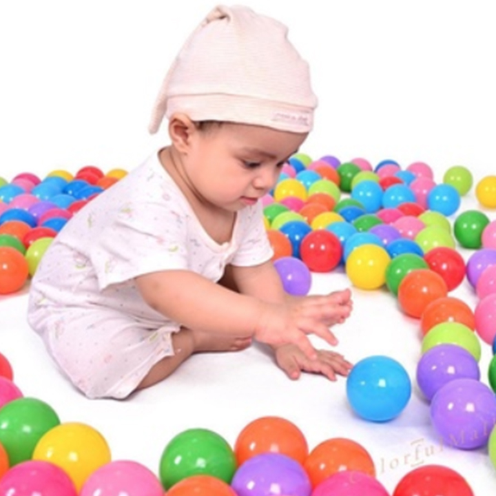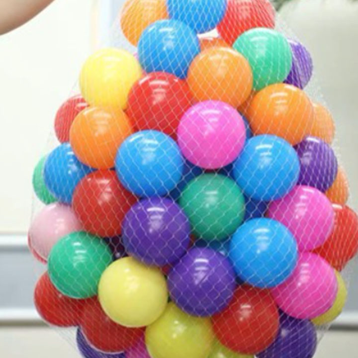 100 quả bóng nhiều màu sắc khác nhau: Vàng, xanh dương, xanh lá, đỏ