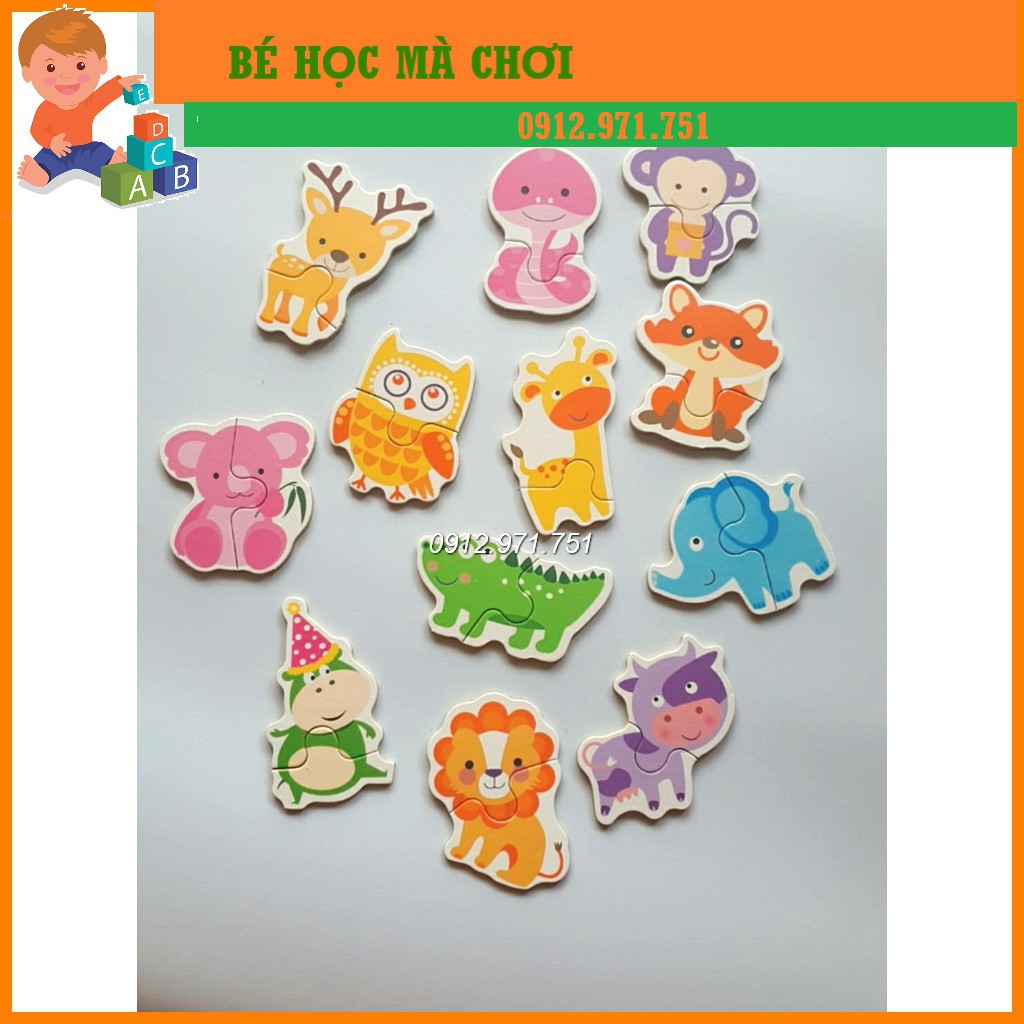 Bộ túi 12 tranh Ghép Hình puzzle 2 Mảnh khởi đầu cho bé