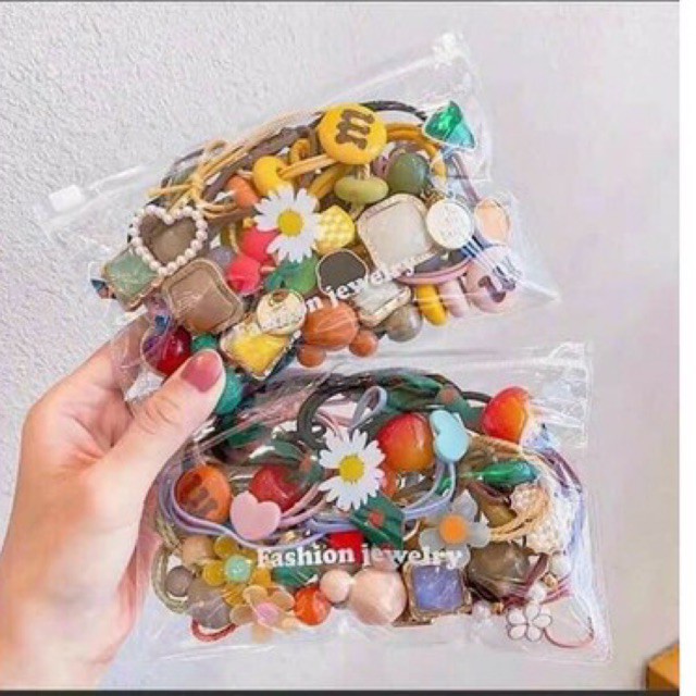 Phụ Kiện Thời Trang > Phụ kiện tóc > Đồ buộc tóc & Nơ || Túi 13 Dây Buộc Tóc Đính Đá Mẫu Mới Về HOT TREND- Kèm túi zip