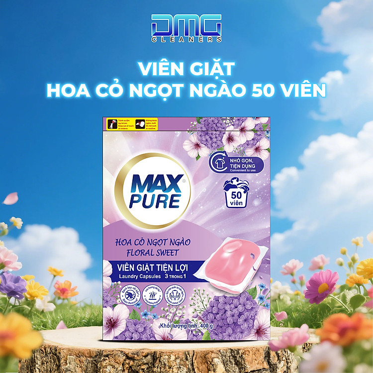 DMG Cleaners Maxpure Túi 30 Viên Giặt 3in1 Hương Hoa Cỏ Ngọt Ngào đơn giản hóa cuộc sống, nâng tầm trải nghiệm giặt giũ.