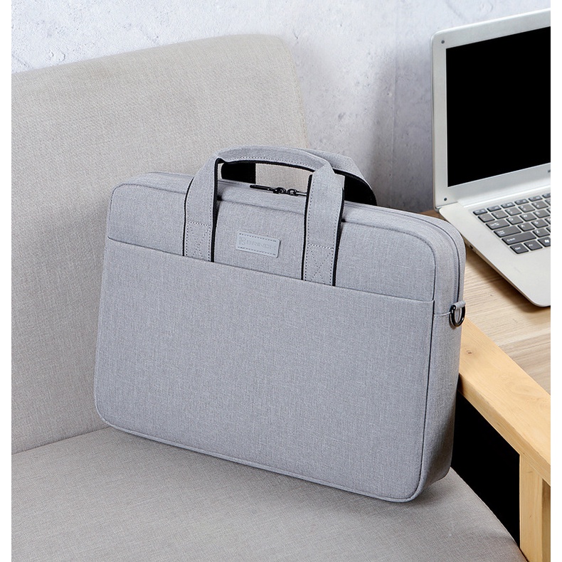 Ưu điểm: Thiết kế trẻ trung, lịch lãm phù hợp với dân công sở, đi họp và cafe Lớp chống sốc dày, bảo vệ cả 2 mặt máy và cạnh máy rất tốt Khóa kéo kim loại, đường may chắc chắn Có cả quai đeo và quai xách gọn nhẹ thời trang Sức chứa tốt, là 1 túi đa năng Có 1 ngăn phụ lớn thoải mái chứa đồ Hàng chính hãng, bảo hành 06 tháng lỗi đổi mới