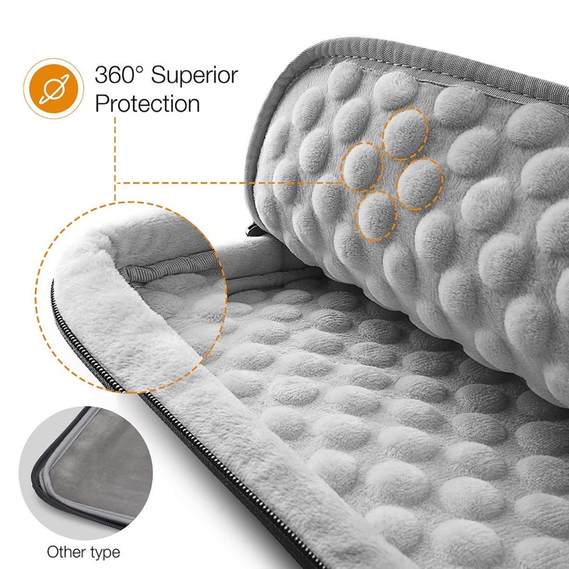 Sử dụng công nghệ sáng chế tiên tiến của Hoa Kỳ CornerArmor™ trang bị phía dưới túi chống sốc một lớp đệm bảo vệ 360* xung quanh vành túi một cách an toàn như một túi khí xe hơi. Đây có lẽ là điều mà khách hàng tìm đến Tomtoc 306* Protective nhiều nhất bởi kết cấu chống sốc hoàn hảo giúp máy tính hoàn toàn có thể được bảo vệ khi sảy ra vấn đề va chạm . Dây kéo phía trên vô cùng mượt mà, đàn hồi, chắc chắn và nhẹ nhàng cho phép mở hoặc đóng máy tính một cách nhanh chống. Sử dụng chất liệu bên ngoài bằng Polyester kháng nước, đặc biệt trang bị thêm lớp mood gợn sóng đẹp mắt giúp tăng sự đàn hồi, bảo vệ hoàn hảo chống va đập và trầy xước cho máy tính. Bên ngoài túi trang bị thêm một ngăn mở rộng để sạc, calbe, tai nghe tiện lợi khi di chuyển. Thiết kế nhẹ, mỏng , thanh lịch đơn giản với những gam màu trung tính phù hợp với nhiều đối tường khách hàng.