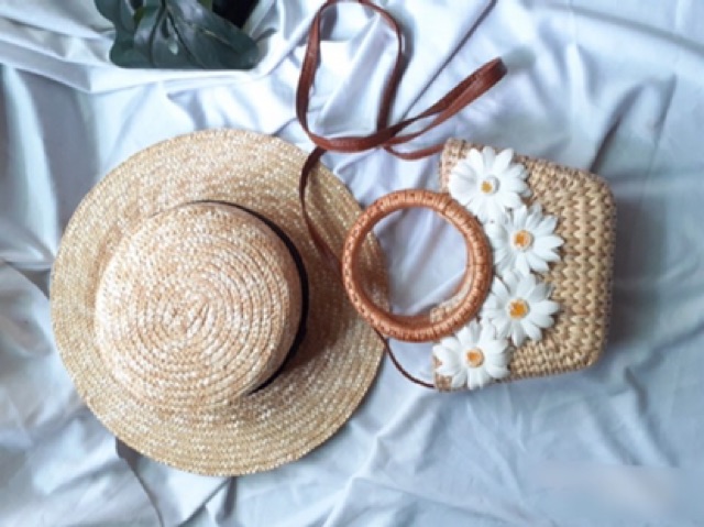 Túi Ví Nữ > Túi đeo chéo & Túi đeo vai || Túi Cói Mắt Na Mini Hoa Cúc