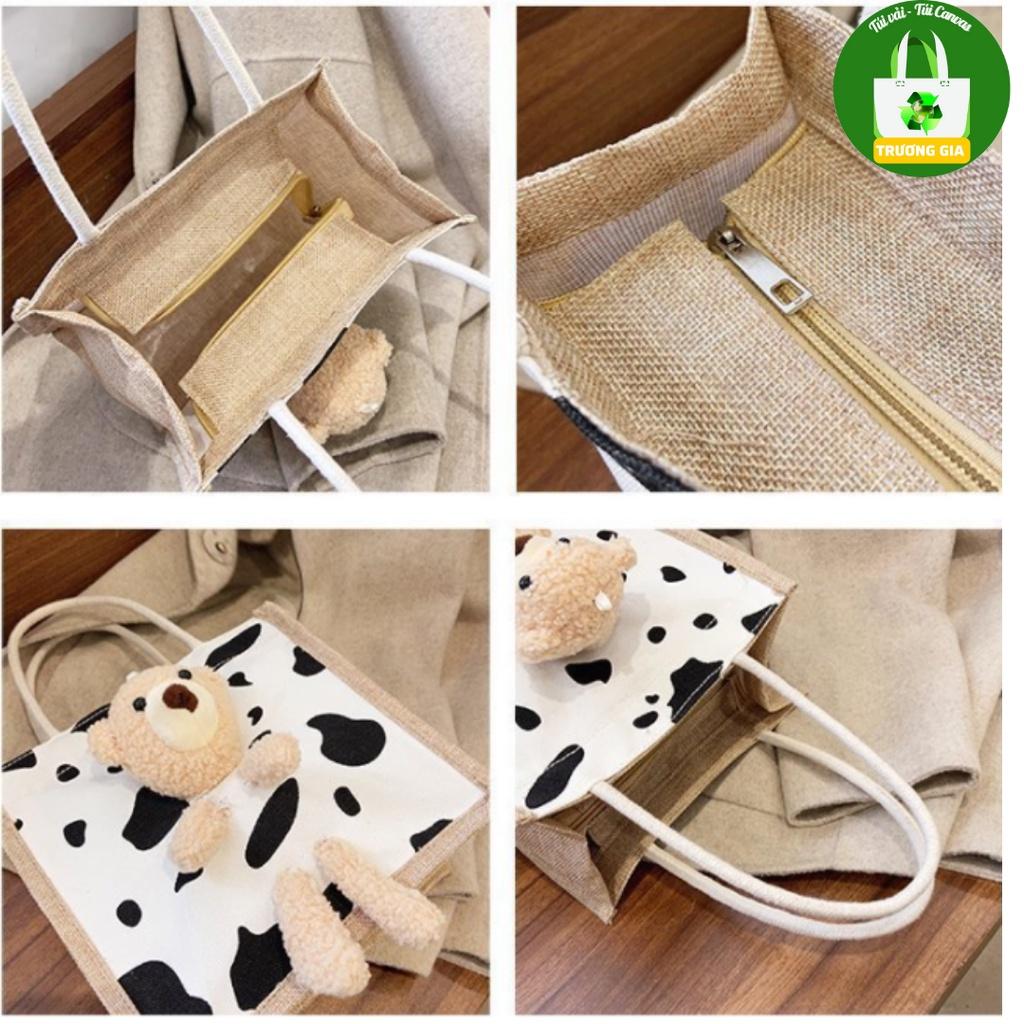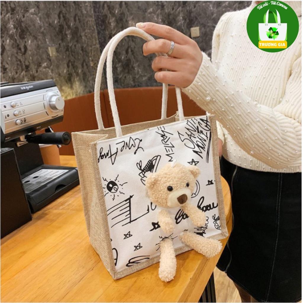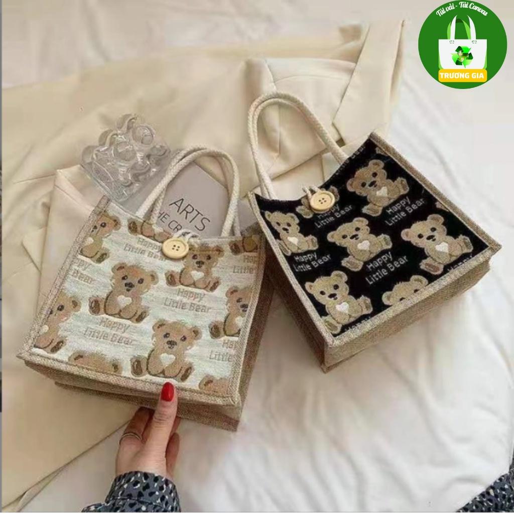 Túi vải nữ túi đeo vai Phiên bản Hàn Quốc Họa tiết Động vật Gấu Bông thời trang xách tay nữ