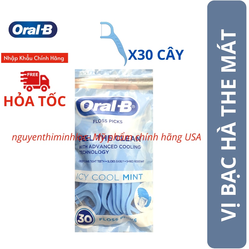 Giới thiệu Túi Cung Tăm Xỉa Răng Chỉ Nha Khoa Oral-B Complete Icy Cool Mint Teeth Flossing Picks 30 Cây/1 Gói Vị Bạc Hà