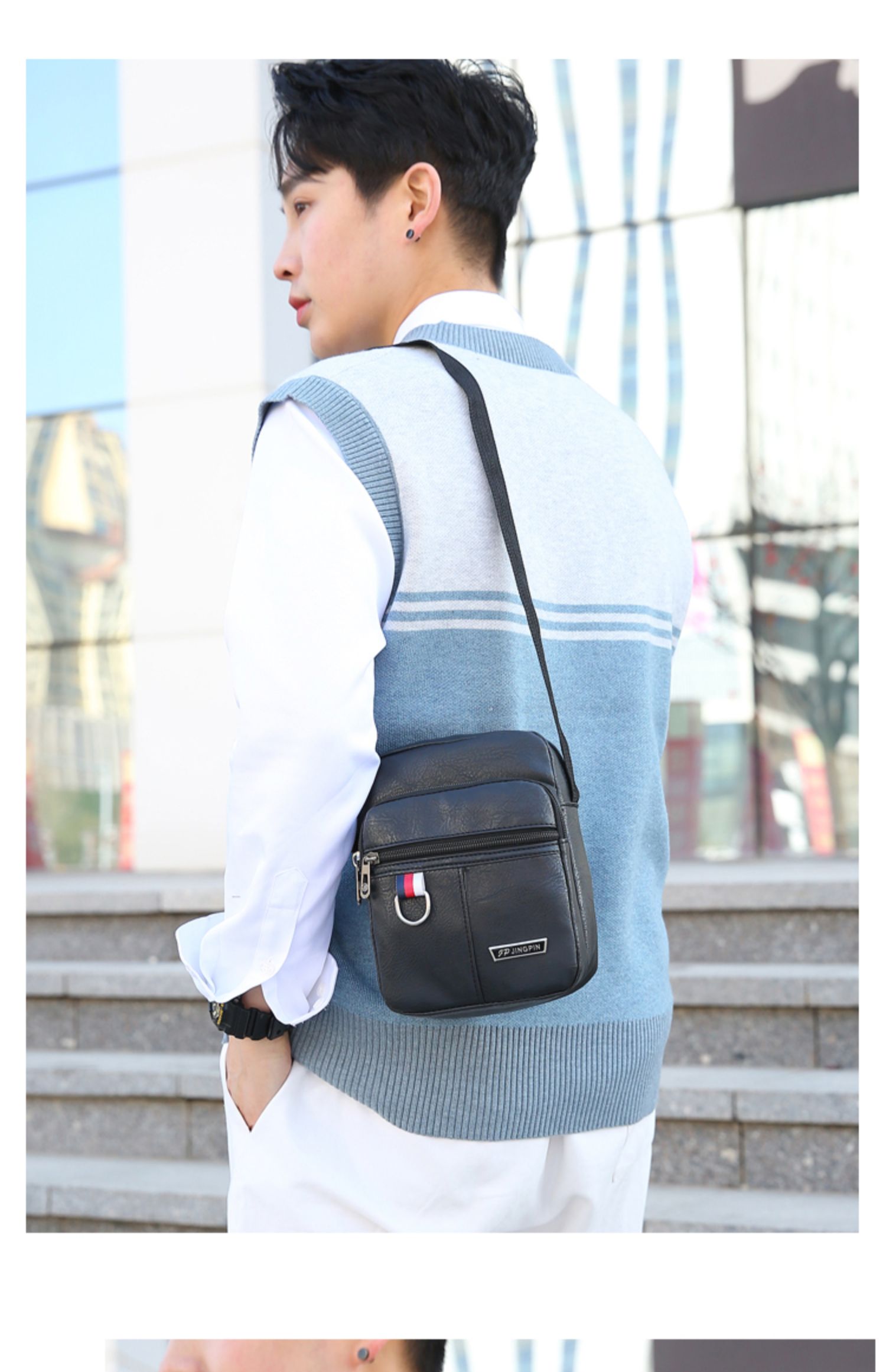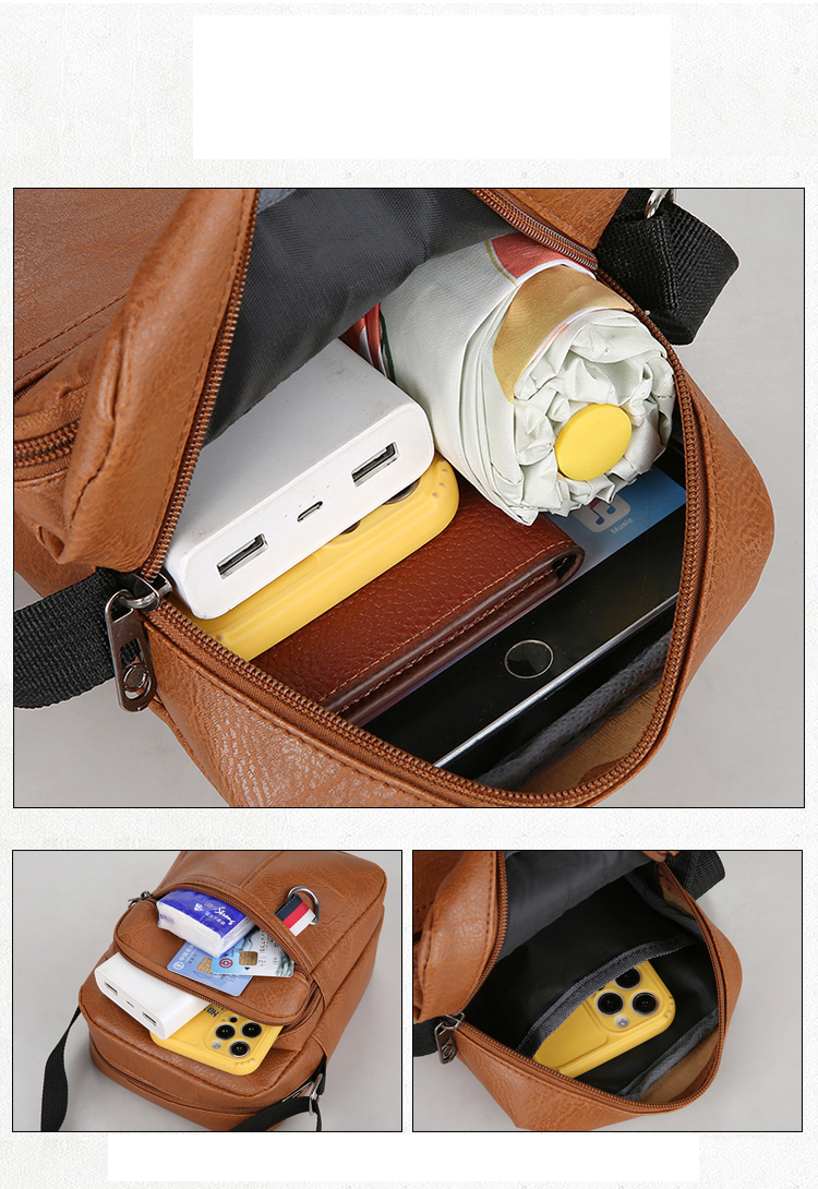 Túi Đeo Chéo Da Nam Thời Trang Cao Cấp, Túi Đeo Nhiều Lớp Có Dây Kéo.