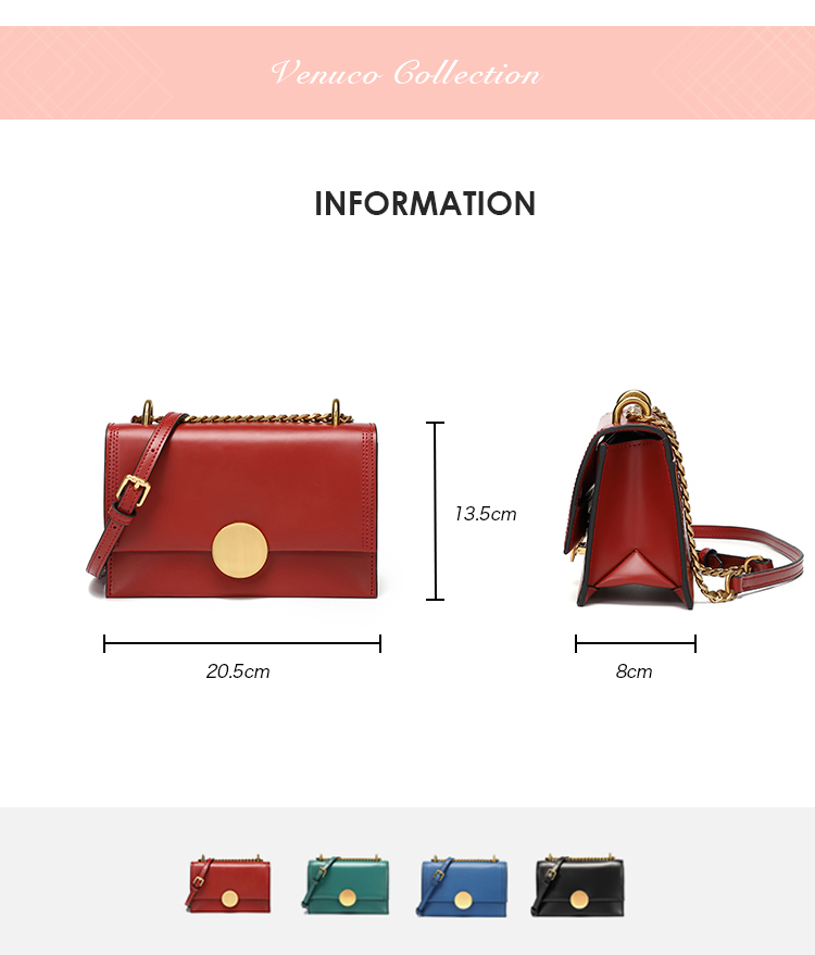 Được làm từ da cao cấp, thiết kế thời thượng, sử dụng chất liệu hoa văn sang trọng tinh tế nhưng vẫn giữ được nét trẻ trung, hiện đại. Túi xách Venuco Madrid với kích cỡ trung bình, đường may tỉ mỉ, chi tiết tinh xảo, không chỉ mang đến sự tiện dụng mà còn giúp phái đẹp thể hiện phong cách cá tính của mình.