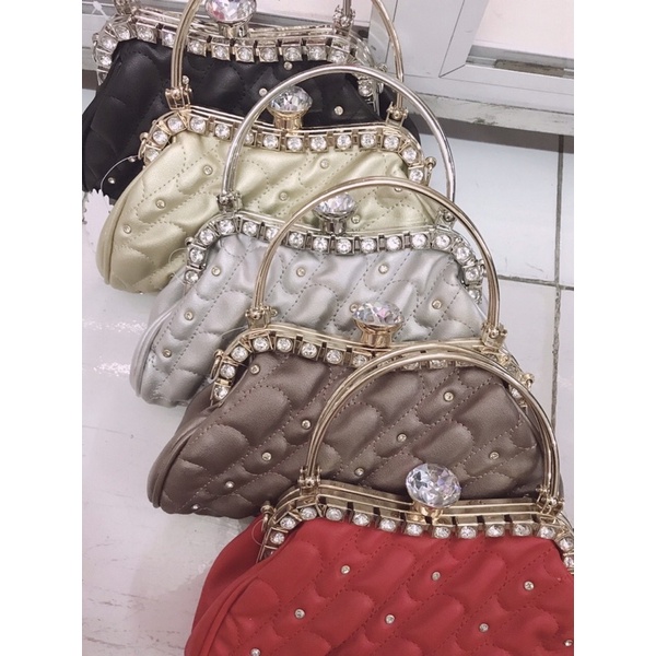Túi Ví Nữ > Ví dự tiệc & Ví cầm tay || Túi Đầm Có Quai Xách Tay Chất Liệu Da si Gắn hạt Cao Cấp