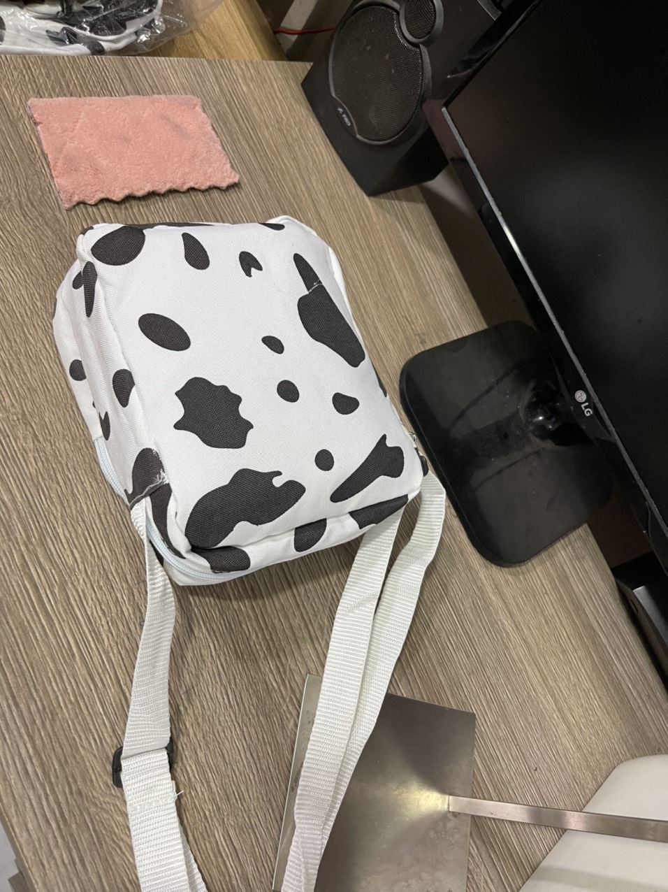 ⇒ màu sắc : đen , trắng (màu phối hình bò sửa nổi bật phong cách hàn quốc)