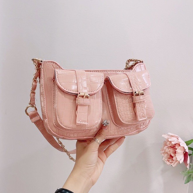 Giới thiệu Túi đeo chéo công sở mini đi chơi 2 túi trước da pu thêu đẹp giá rẻ HT006