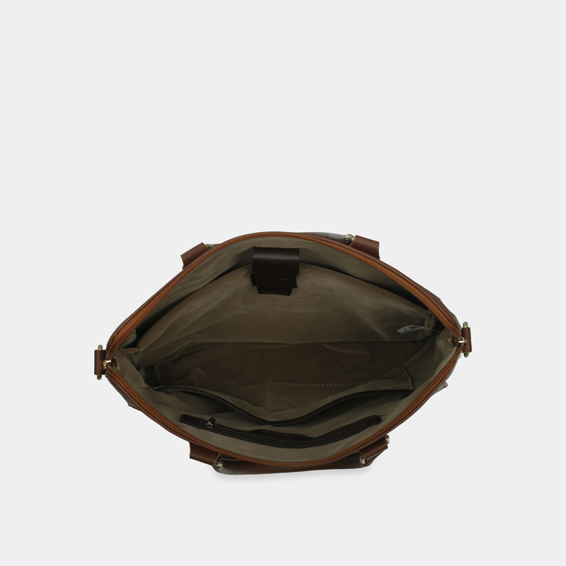 Bên trong túi có 1 ngăn chính rộng rãi thích hợp đựng tài liệu khổ A4, sổ sách và 1 ngăn chống sốc có lót nhung mềm mại thích hợp đựng laptop từ 14inch trở xuống…Ngoài ra bên trong túi còn có 3 ngăn phụ nhỏ đựng điện thoại, ví tiền, các loại giấy tờ tuỳ thân, thẻ xe, tai nghe, chìa khoá, mỹ phẩm,…Mặt sau túi có 1 ngăn phụ để được sạc laptop, sạc dự phòng rất thích hợp sử dụng để đi làm, đi dạy, đi chơi, dạo phố.