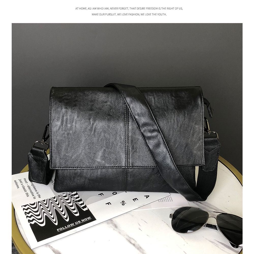 Giới thiệu Túi đeo chéo da bò chữ nhật túi xách nam đen da bò trơn cặp đựng tài liệu trơn đơn giản MINA XM6002