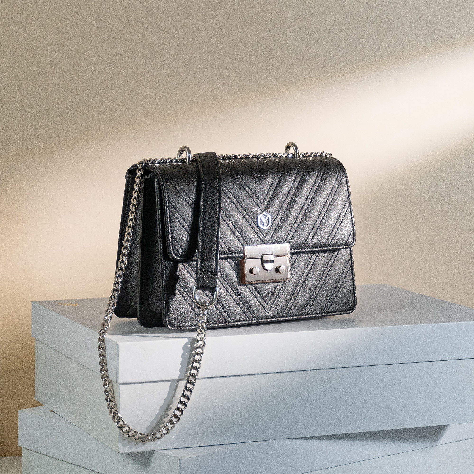 Túi đeo chéo da nữ Yuumy Seasand YN137 thiết kế theo phong cách hiện đại, quý phái. Kiểu dáng túi hình hộp thời trang, sang trọng. Bên trong diện tích có thể đựng vừa điện thoại, son, phấn, vật dụng cá nhân cần thiết cho nàng khi ra đường. Điểm nhấn thu hút của sản phẩm nằm ở phần khóa kim loại sáng bóng và dây đeo phối xích cá tính. Bạn có thể sử dụng túi đeo khi đi làm, đi chơi, đi dự tiệc.
