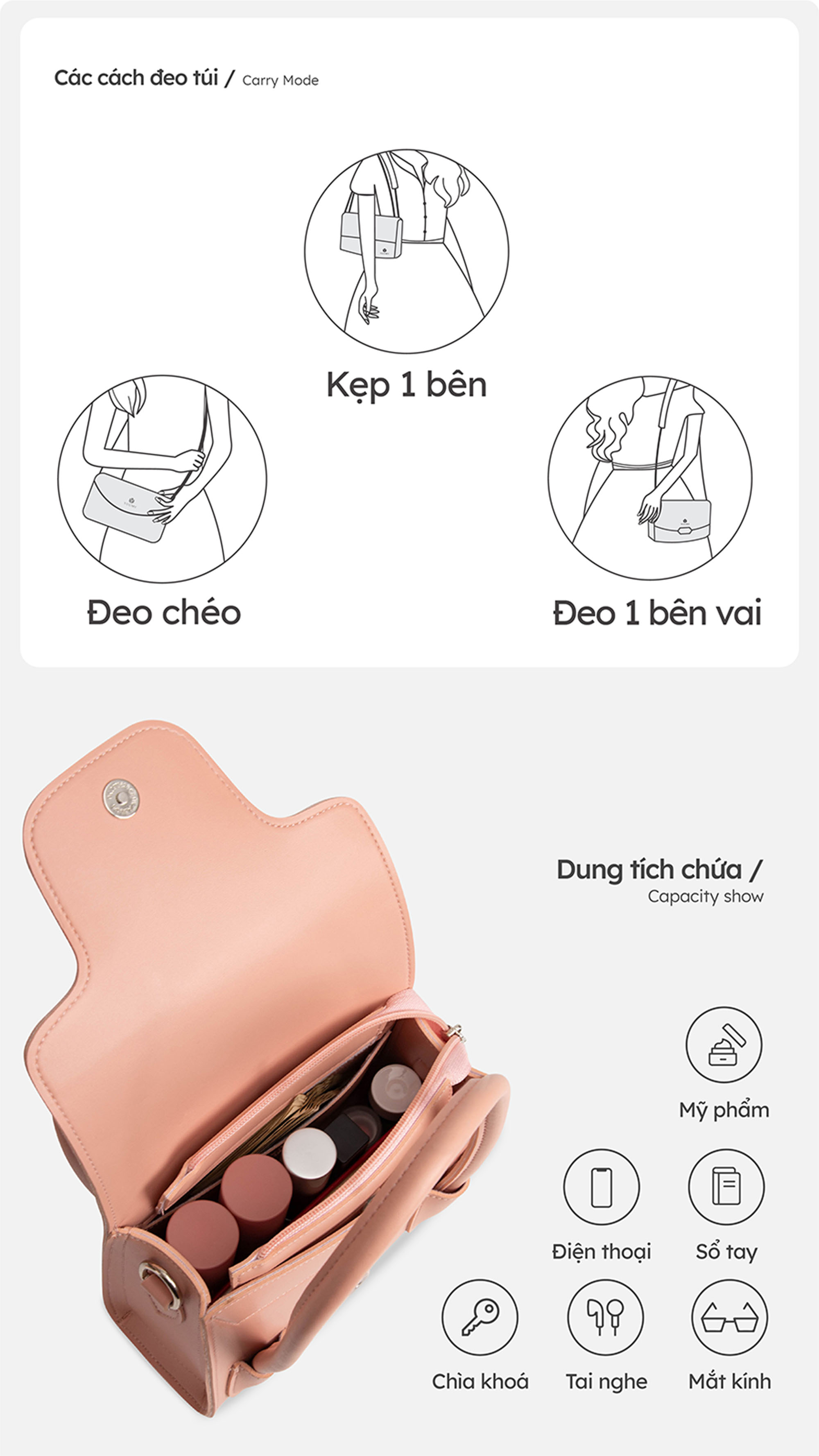 - Công dụng: Đựng điện thoại, ví tiền, vật dụng cần thiết,…
