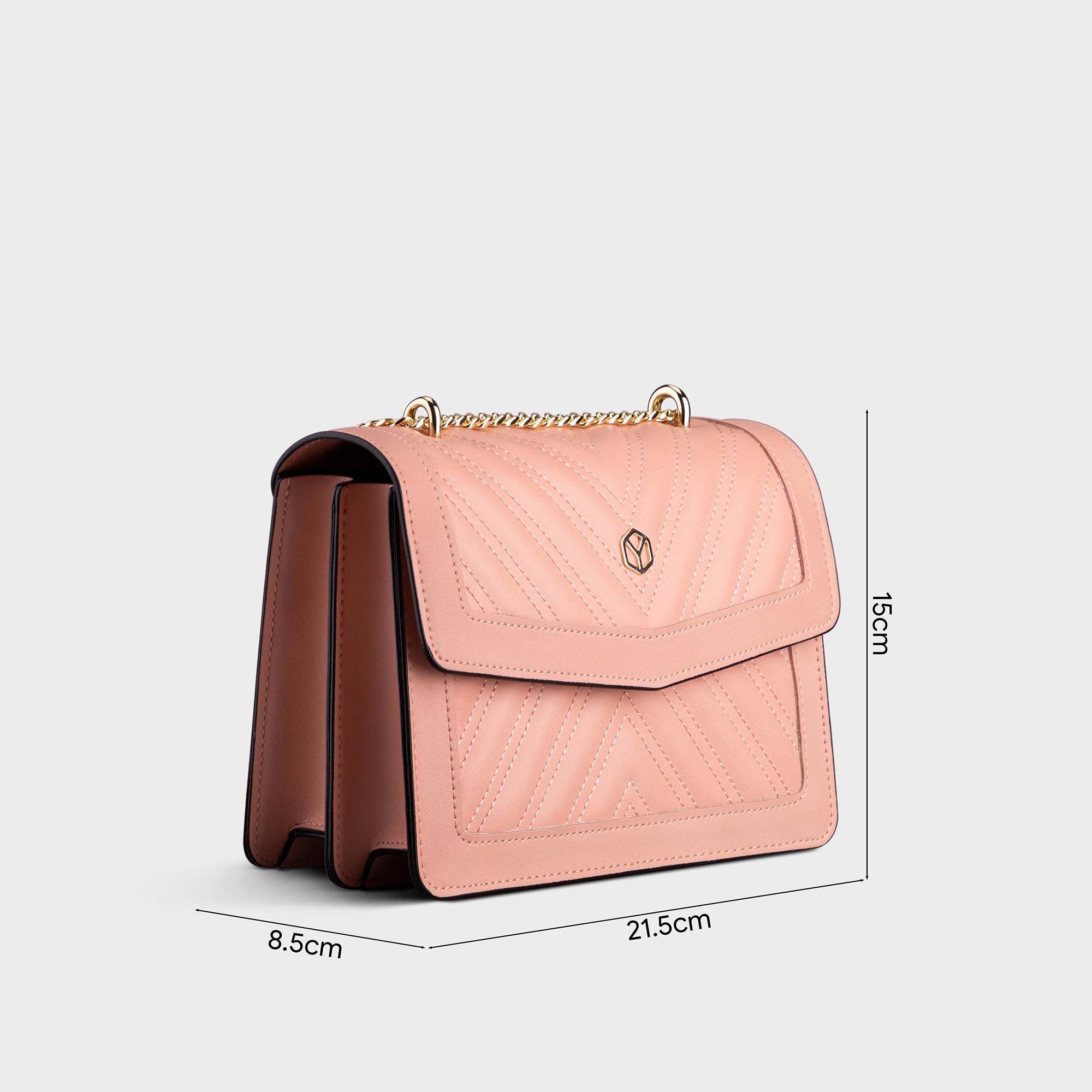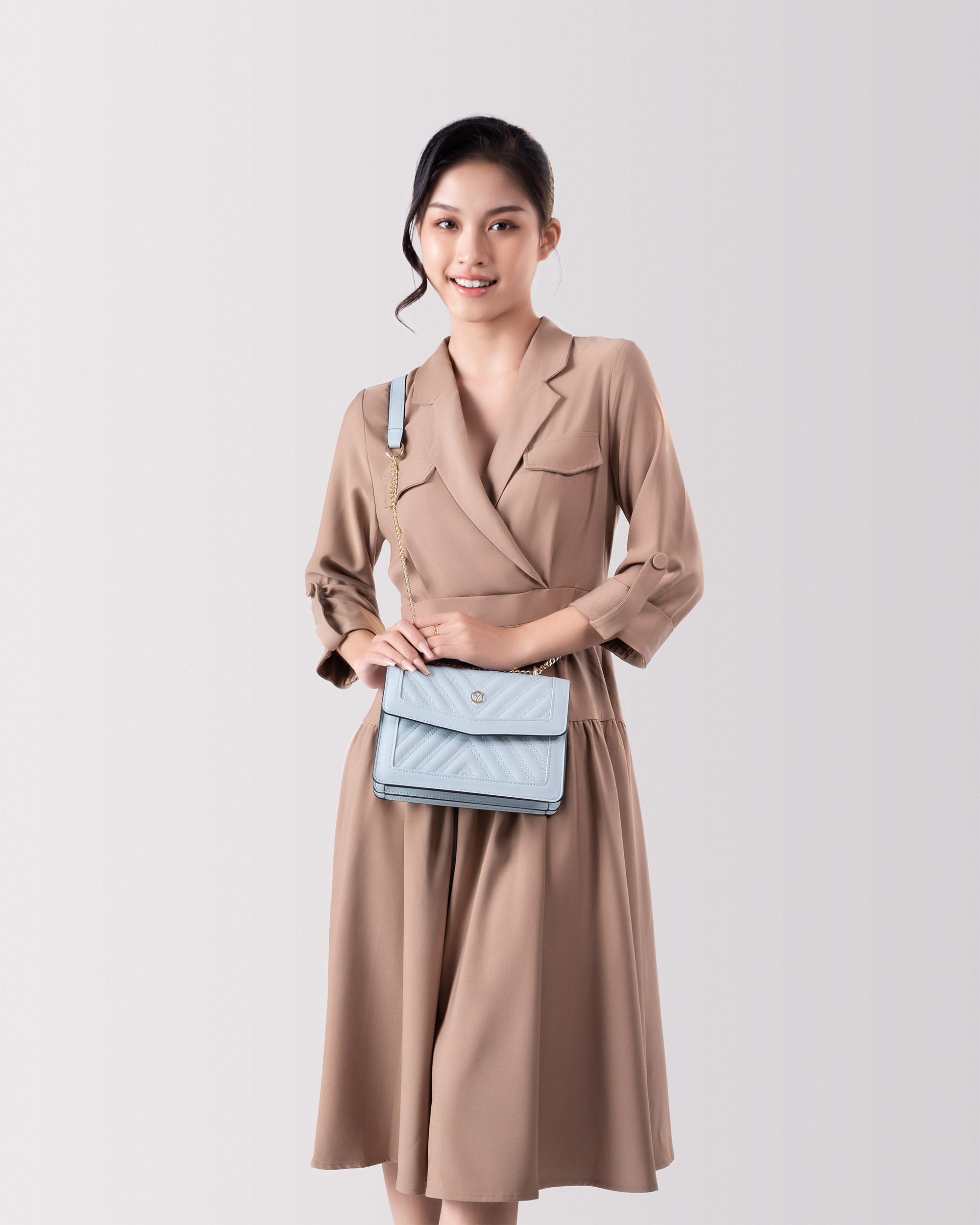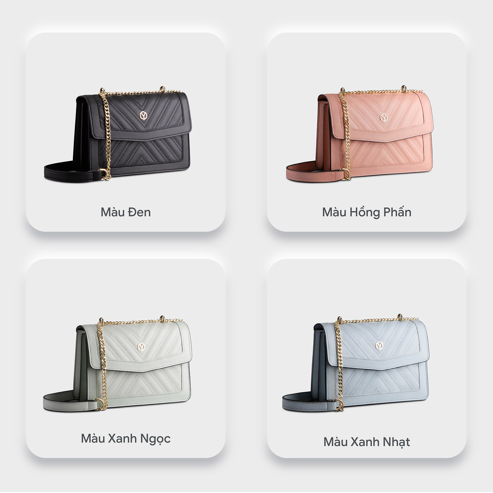 Túi đeo chéo nữ YN138 với kiểu dáng hình hộp, nắp gập cổ điển đơn giản nhưng sang trọng. Túi được làm từ chất liệu da tổng hợp cao cấp, nổi bật bởi họa tiết chần chỉ hình chữ V hiện đại và logo Yuumy bằng kim loại sáng bóng bắt mắt. Ngăn chính của túi đủ rộng để bạn mang theo các vật dụng cần thiết như điện thoại, mỹ phẩm, ví tiền… Với những gam màu nhẹ nhàng thanh lịch, chiếc túi xách thời trang này phù hợp cho bạn khi đi dạo phố, đến văn phòng hay các buổi tiệc.