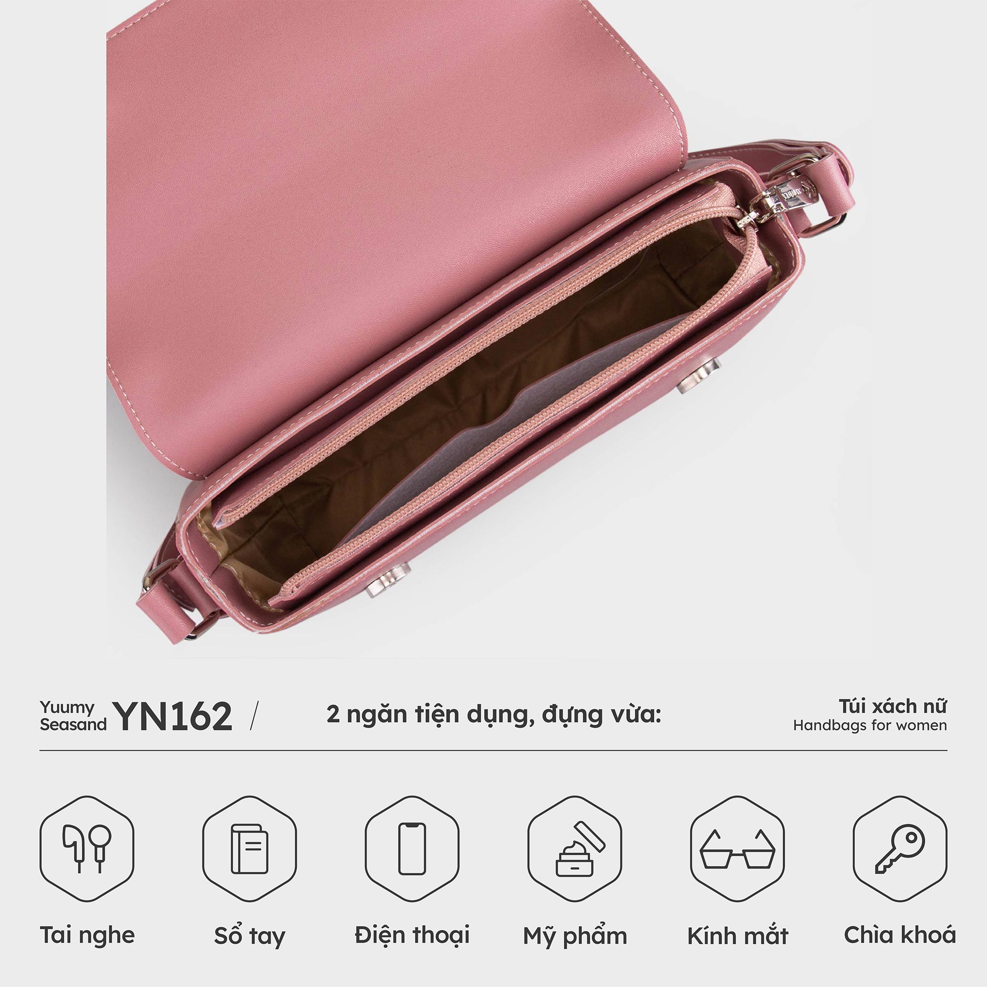 Túi đeo chéo nữ làm từ chất liệu da cao cấp Yuumy Seasand YN162 được thiết kế theo xu hướng thời trang hiện đại. Điểm nhấn của chiếc túi này nằm ở các đường viền bo tròn mềm mại, tăng thêm sự nữ tính cho người dùng. Thêm vào đó, sản phẩm đi kèm với một dây đeo vai có thể tháo rời và tùy chỉnh độ dài tiện dụng. Với kiểu dáng đơn giản cùng các gam màu thanh lịch, bạn dễ dàng diện đi làm, đi dạo phố hay đến các buổi tiệc…