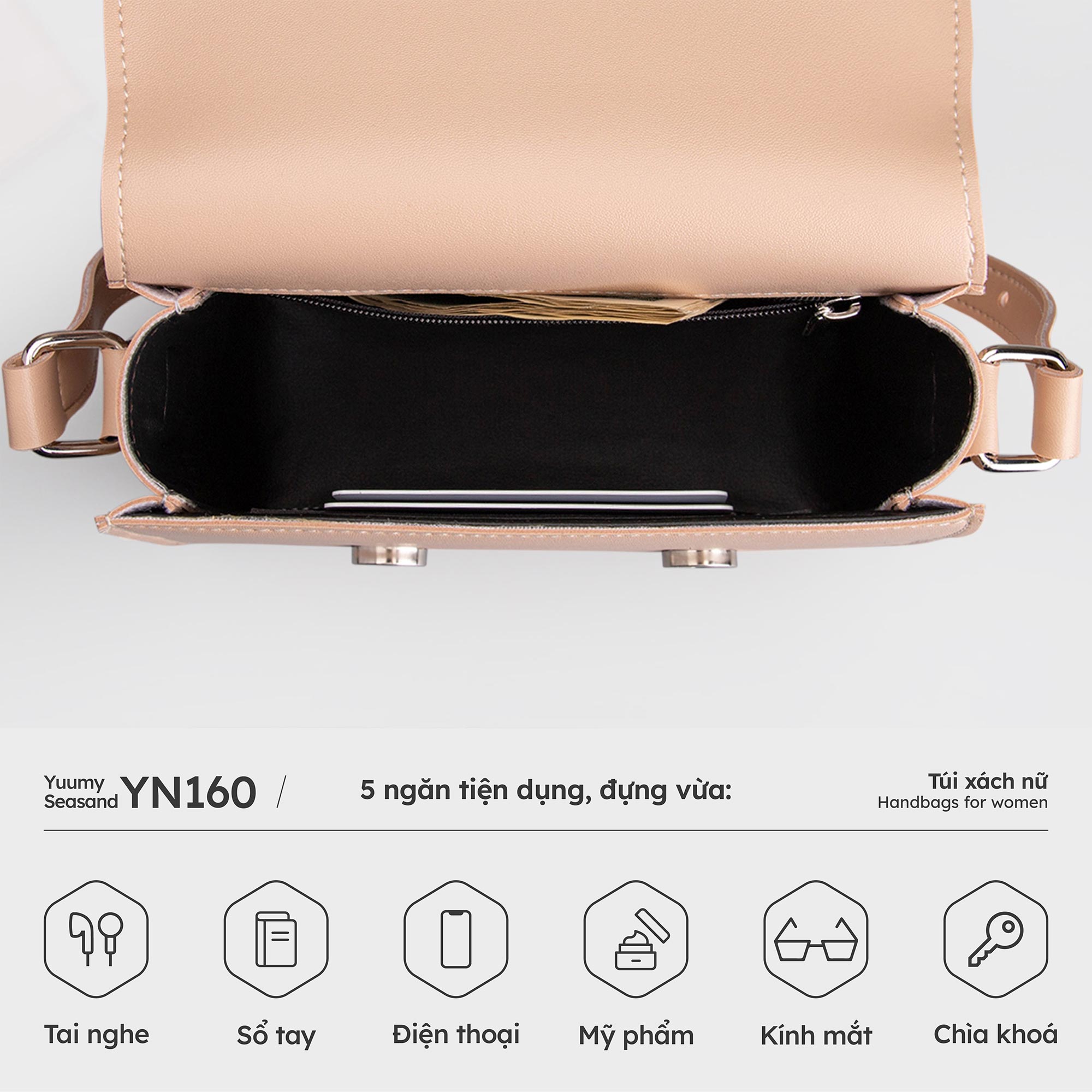 Mẫu túi đeo chéo thời trang YN160 với thiết kế nắp gập cùng kiểu dáng hình thang mới lạ sẽ giúp bạn tạo hình ảnh đẹp, trẻ trung và hiện đại. Chiếc túi được làm từ chất liệu da tổng hợp cao cấp chống thấm nước, dễ dàng vệ sinh. Túi có thể chứa rất nhiều vật dụng của bạn gái, giúp các nàng sắp xếp gọn gàng đồ dùng cá nhân và nhanh chóng tìm thấy khi cần. Túi còn đi kèm dây đeo, bạn còn có thể điều chỉnh độ dài để đeo vai hoặc đeo chéo tùy theo thói quen của mình.