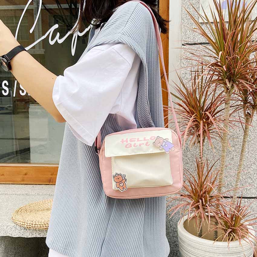 Giới thiệu Túi đeo chéo Hello Girl NASI T1020 phong cách hàn quốc túi đeo vai nữ thời trang dạo phố dễ thương vải đẹp